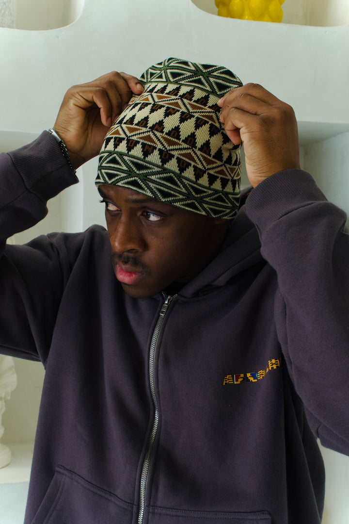 Clean, bold and rooted in culture. This African pattern beanie celebrates heritage through design. Crafted with premium knit and cultural detailing, it brings warmth, texture and identity to a timeless streetwear staple.
